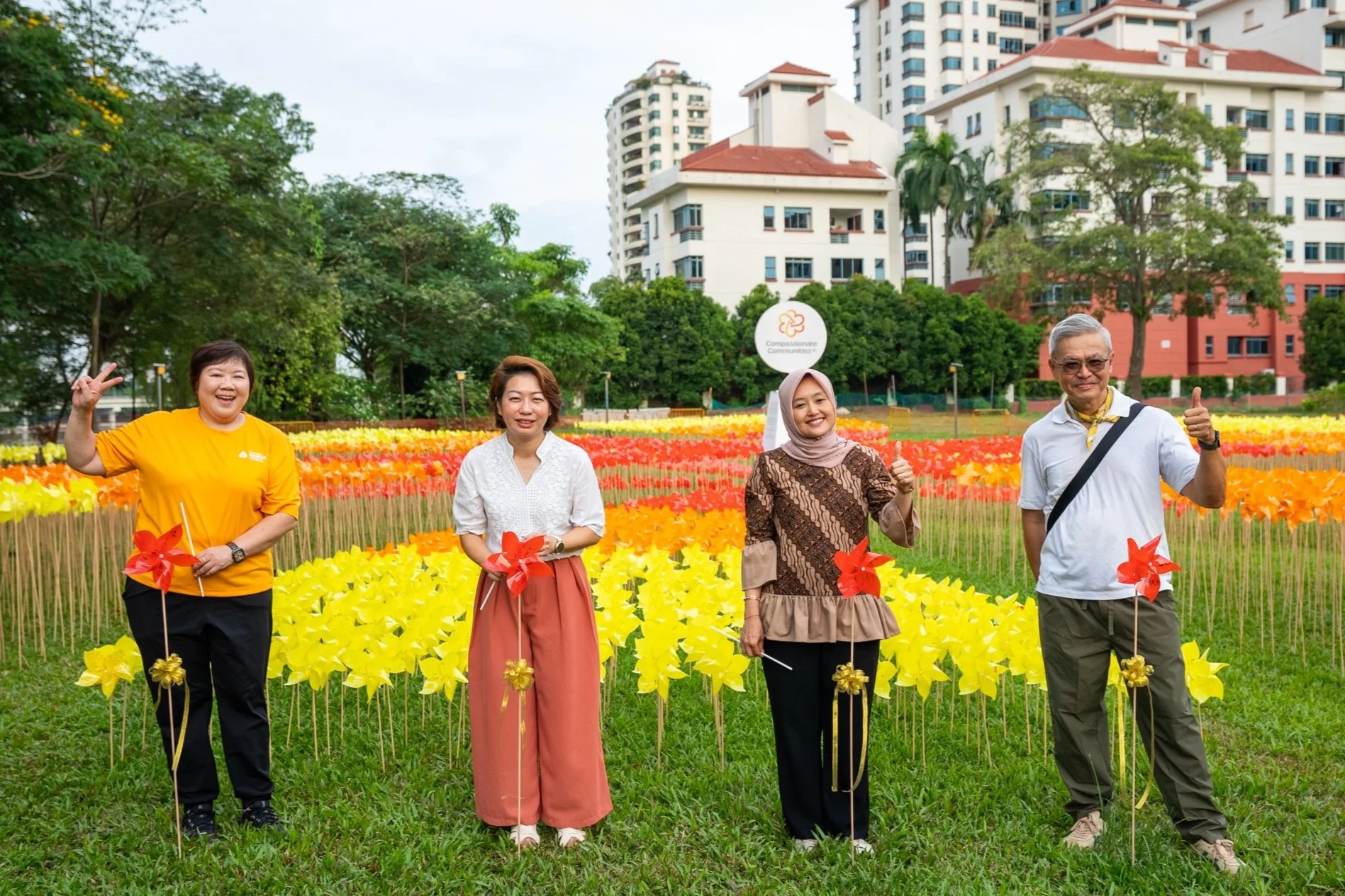 The art Installation featuring 10,000 hand-decorated pinwheels was co-created with over 60 partners, including SHC Member Organisations, schools, and community centres. Each pinwheel reflects how small acts of care, multiplied across a community, can spark a ripple of compassion and raise awareness of palliative care.